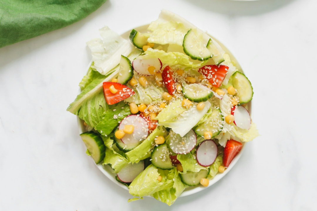 搭配蔬菜沙拉和溫水