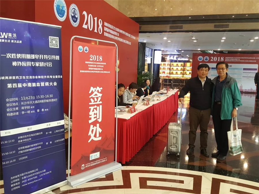 2018年11月23日海峽兩岸醫(yī)藥衛(wèi)生交流協(xié)會神經(jīng)外科專業(yè)委員會第三次學術會議、第四屆中南腦血管病大會暨湖南省醫(yī)師協(xié)會神經(jīng)外科醫(yī)師分會成立籌委會會議在星城長沙華天大酒店召開,同時吉林省萊沃醫(yī)療科技有限公司在華天大酒店B座四樓芙蓉廳B廳成功舉辦“一次性使用腦部牽開導引導管神外應用專家研討會“。會議邀請李一明教授和曾春教授蒞臨指導,交流“一次性使用腦部牽開導引導管”在神經(jīng)外科手術方面的臨床應用及經(jīng)驗。